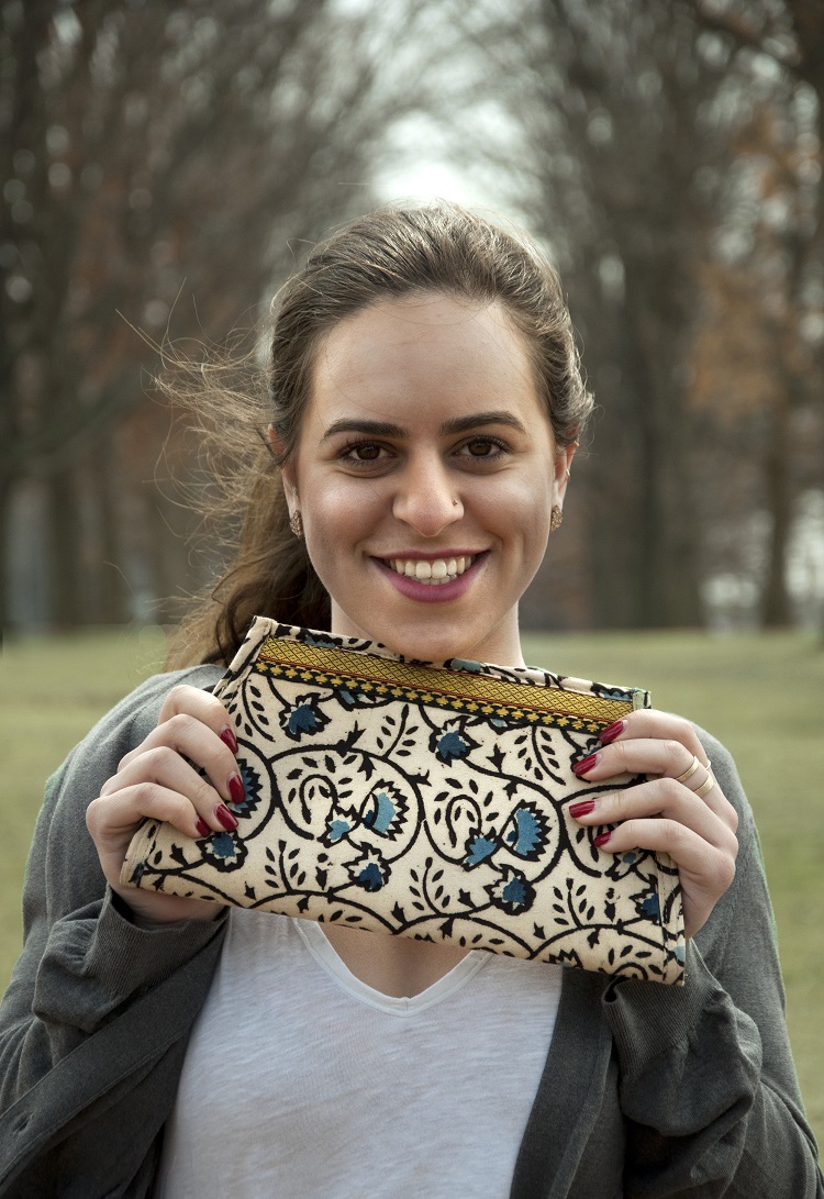 Add some extra pizzazz to any outfit with this stylish day to night Clutch tucked under your arm. When all you need are a few staple items this naturally dyed, block printed clutch with metallic accents is just the thing. It offers a convenient snap closure, an inside zipper pocket, and a tailored construction to allow this clutch to keep its elegant shape.