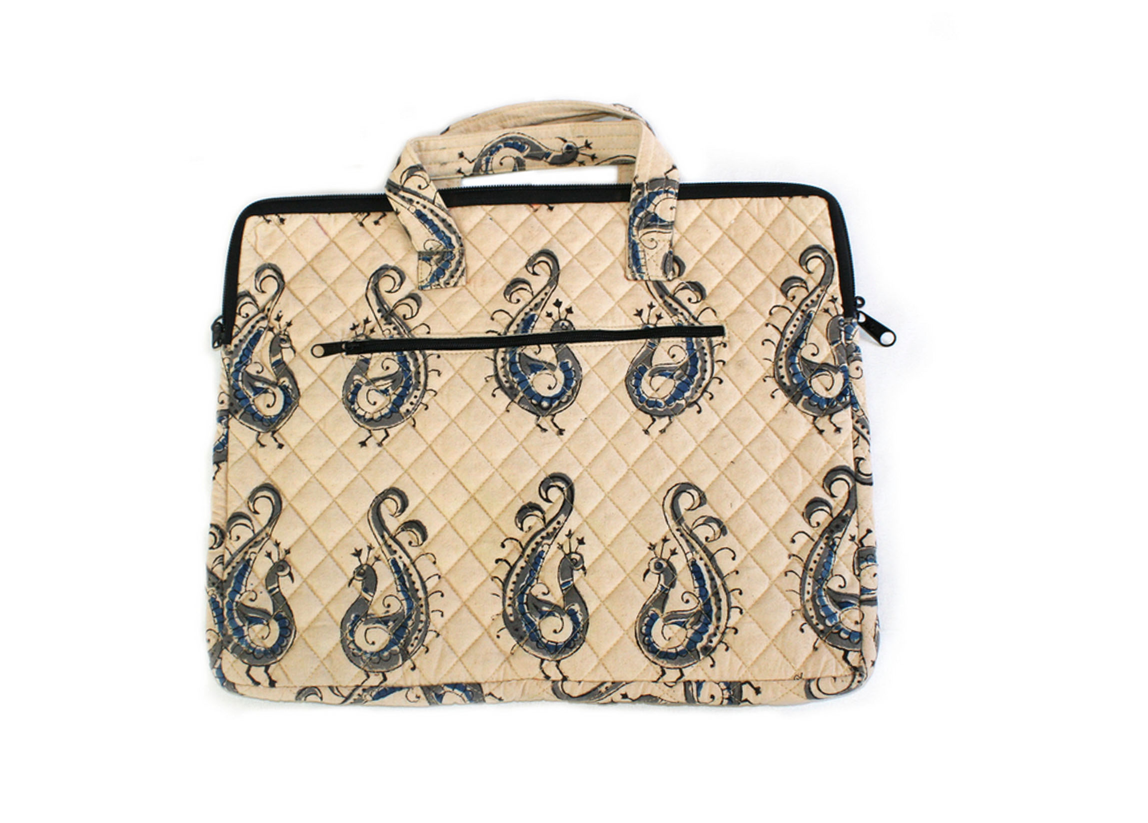 Protect your computer with our stylish laptop bag. Complete with naturally dyed block-printed cotton fabric, dual top handles, one zipper side pocket, this handcrafted laptop case will keep you prepared and professional. This bag can accommodate up to a 15-inch laptop