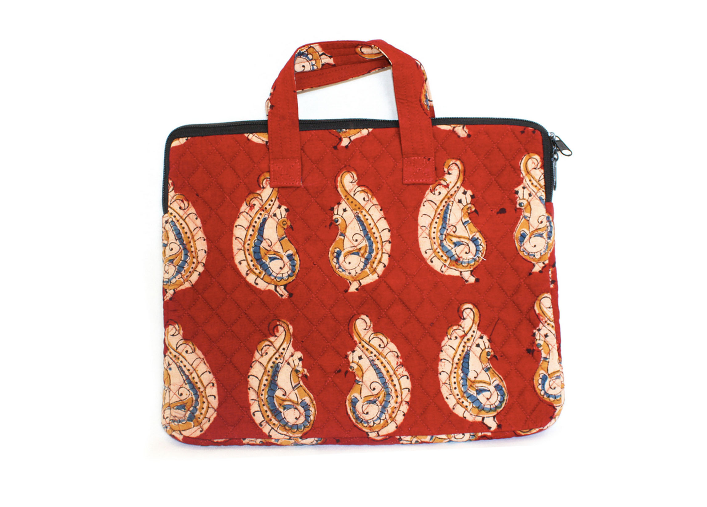 Protect your computer with our stylish laptop bag. Complete with naturally dyed block-printed cotton fabric, dual top handles, one zipper side pocket, this handcrafted laptop case will keep you prepared and professional. This bag can accommodate up to a 15-inch laptop