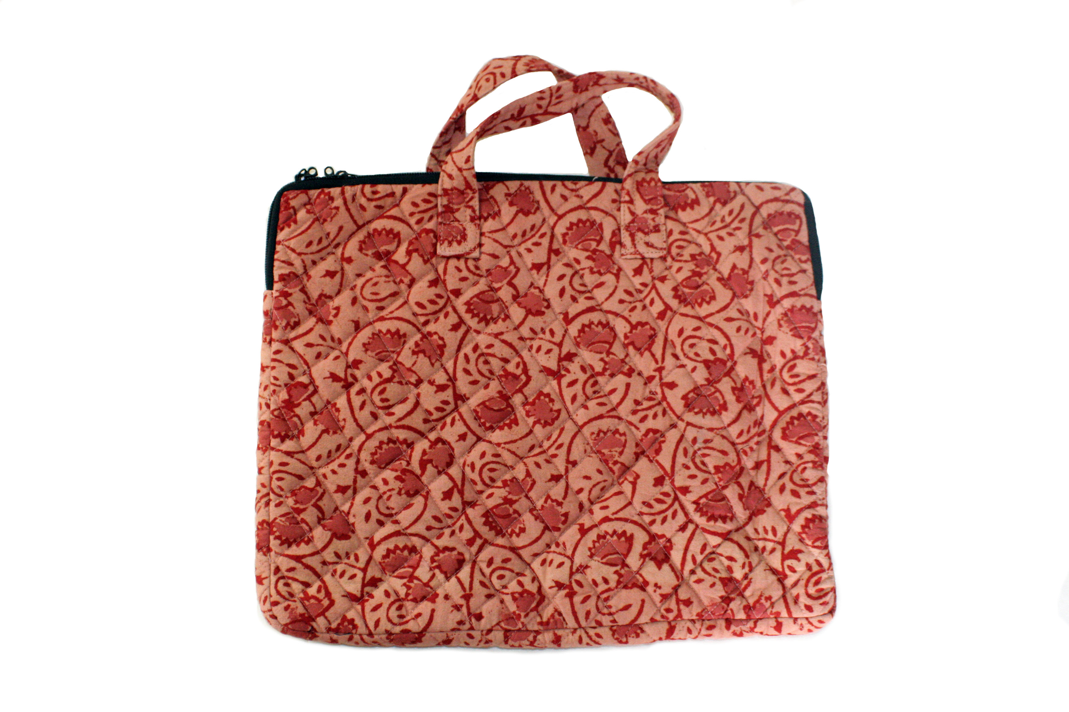 Protect your computer with our stylish laptop bag. Complete with naturally dyed block-printed cotton fabric, dual top handles, one zipper side pocket, this handcrafted laptop case will keep you prepared and professional. This bag can accommodate up to a 15-inch laptop