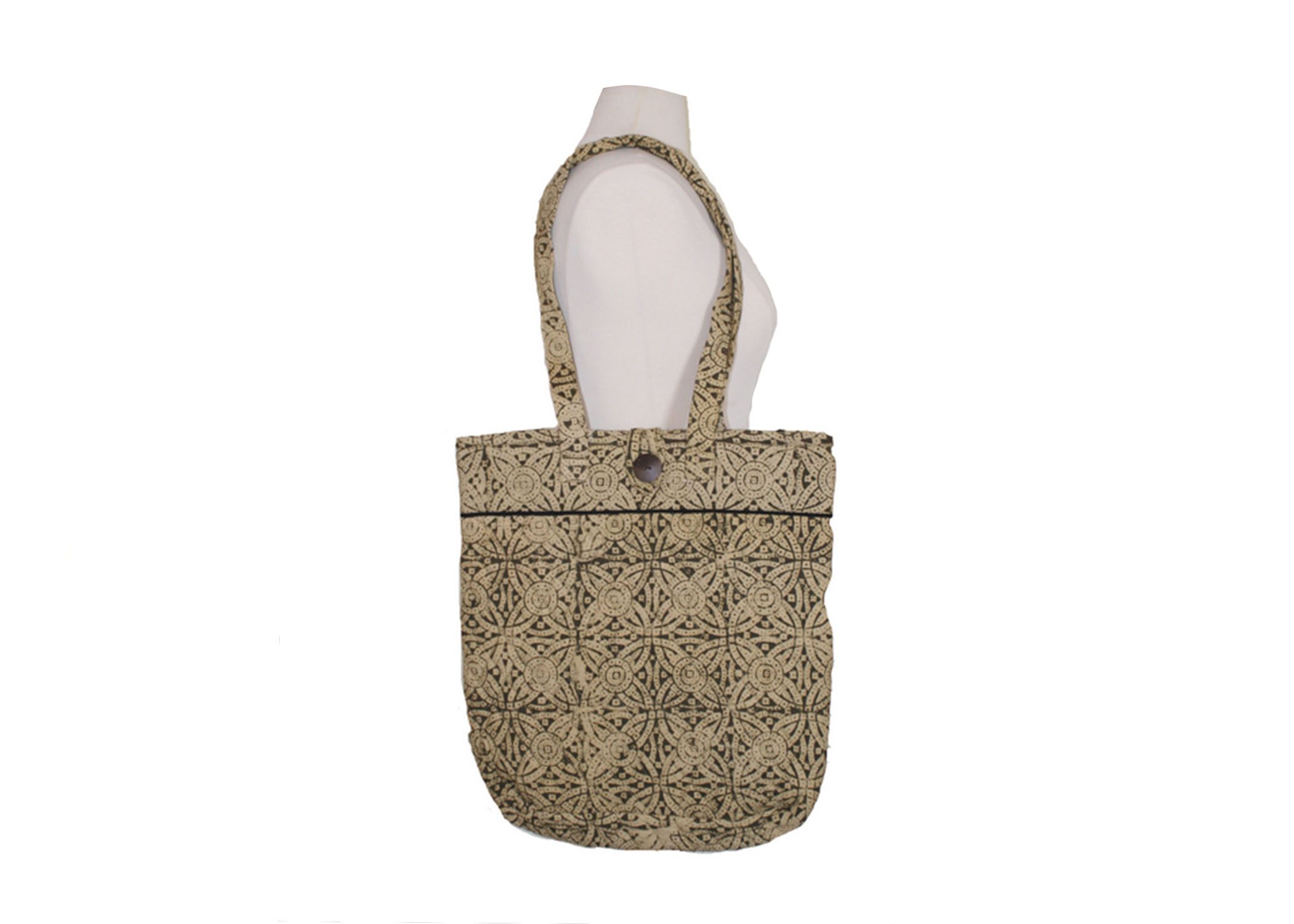 This unique handcrafted bag delivers versatility and organization. Our tote bags are made using naturally dyed block-printed cotton fabric. This style has a zip-top closure, two shoulder straps, one interior pocket and a spacious interior to accommodate all of your everyday essentials. This is a great bag for work, school or running errands.