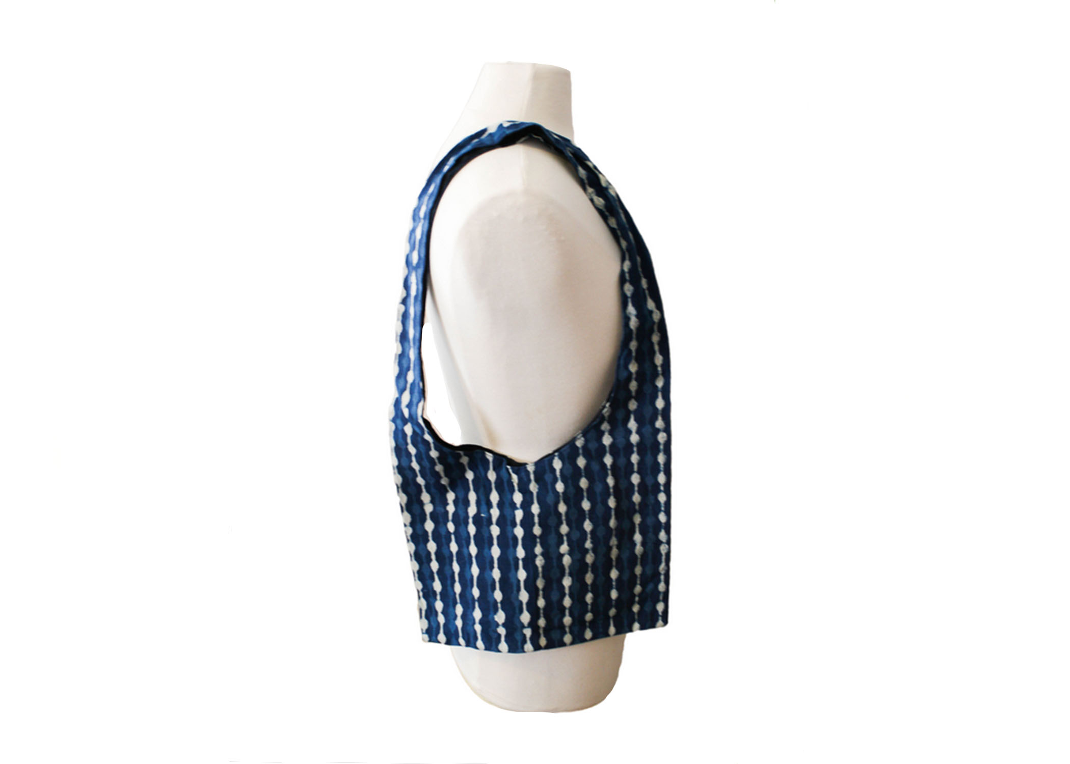 This bag delivers style and organization for our younger customers. Our sling bags are handcrafted using naturally dyed block-printed cotton fabric, making each bag one of a kind. This style has a magnetic button closure and one internal zip pocket. The interior space is perfect for a book, notepad, iPod, and all your other important essentials.