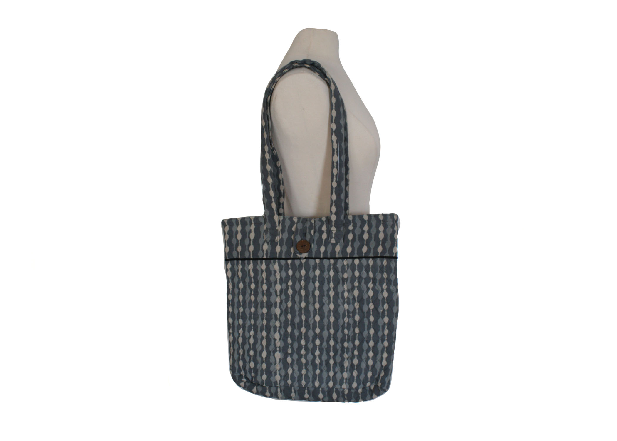 This unique handcrafted bag delivers versatility and organization. Our tote bags are made using naturally dyed block-printed cotton fabric. This style has a zip-top closure, two shoulder straps, one interior pocket and a spacious interior to accommodate all of your everyday essentials. This is a great bag for work, school or running errands.