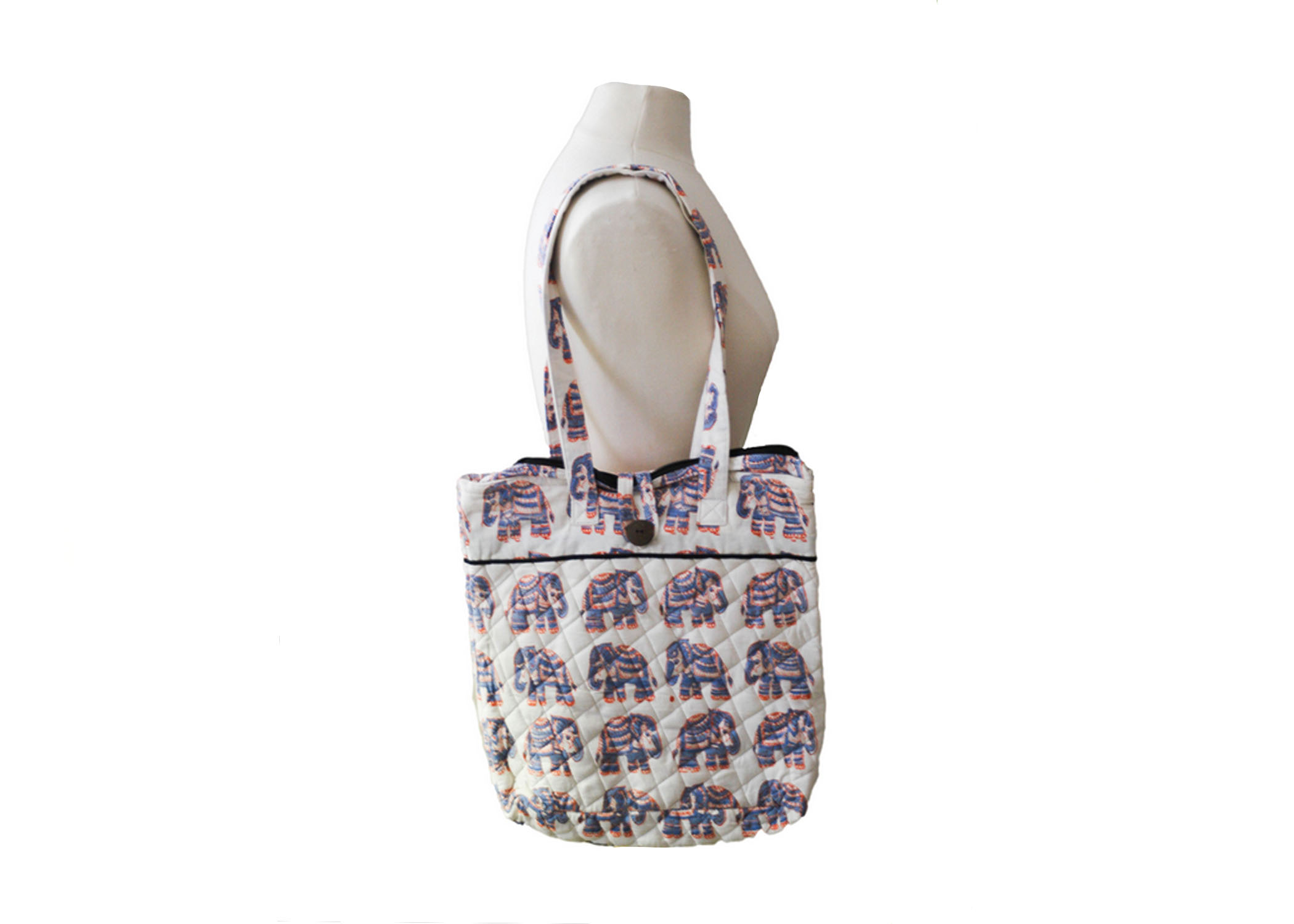This unique handcrafted bag delivers versatility and organization. Our tote bags are made using naturally dyed block-printed cotton fabric. This style has a zip-top closure, two shoulder straps, one interior pocket and a spacious interior to accommodate all of your everyday essentials. This is a great bag for work, school or running errands.