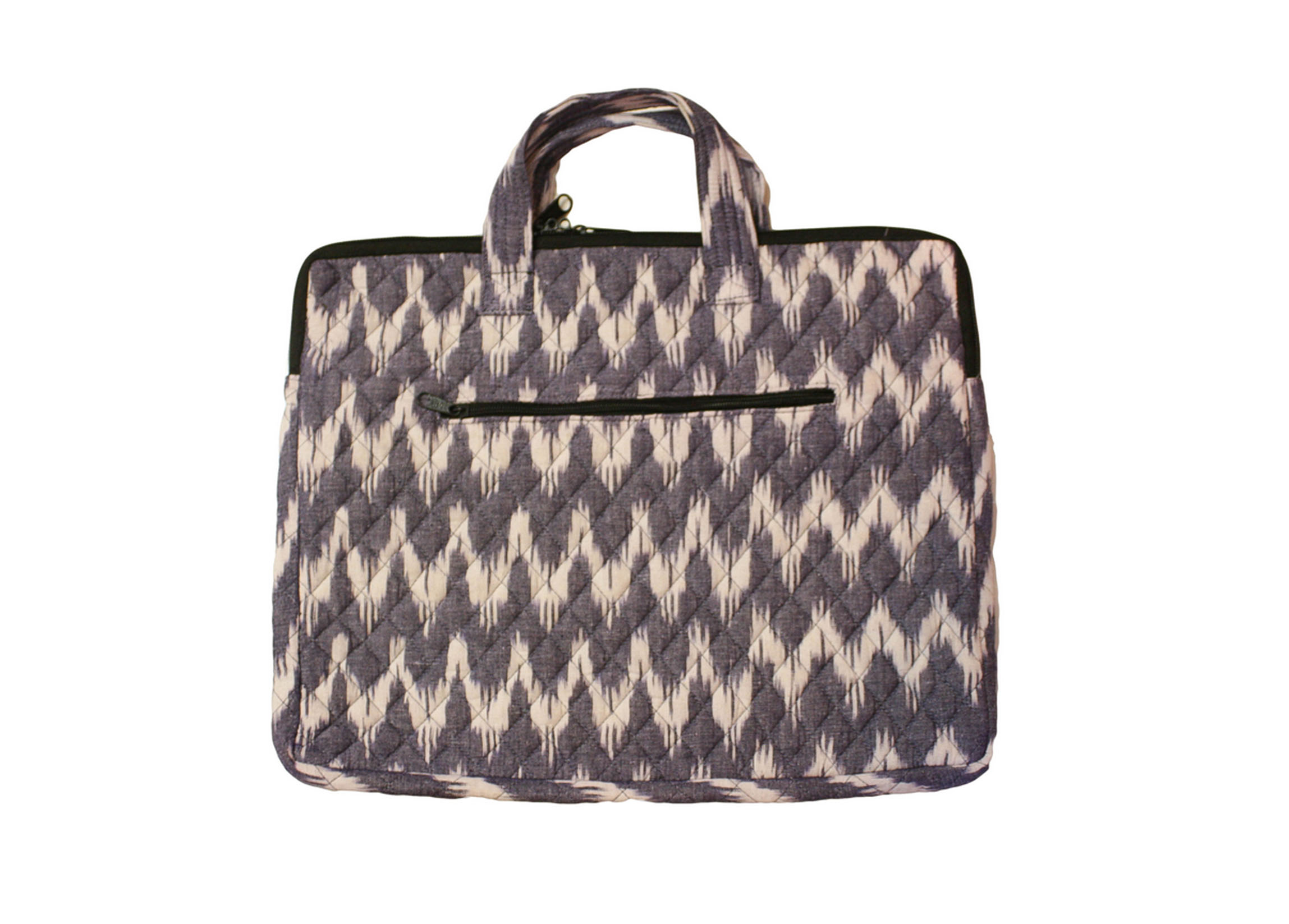 Protect your computer with our stylish laptop bag. Complete with naturally dyed block-printed cotton fabric, dual top handles, one zipper side pocket, this handcrafted laptop case will keep you prepared and professional. This bag can accommodate up to a 15-inch laptop