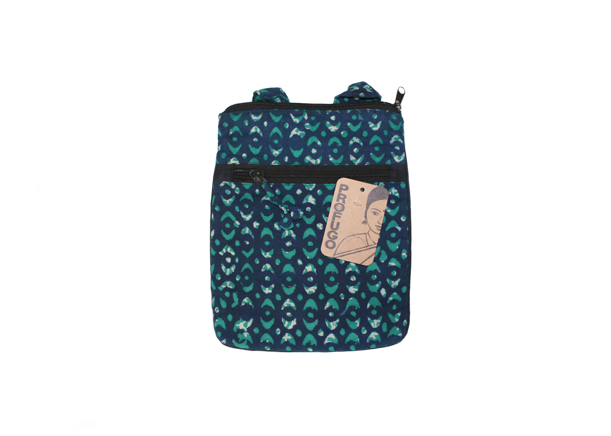 This bag delivers style and organization for those who like to travel light. Our union bags are handcrafted using naturally dyed block-printed cotton fabric, making each bag one of a kind. This style has a zip-top closure and one external quick-access slip pocket. The interior space is perfect for all your essentials. This is the perfect bag to take with you when running errands. The union bag is also the perfect size for your iPad mini!